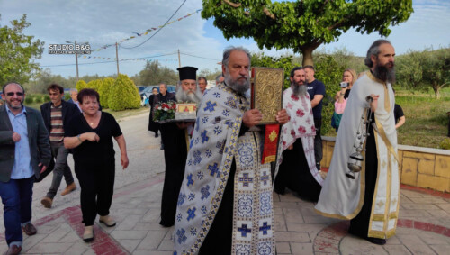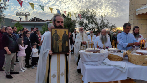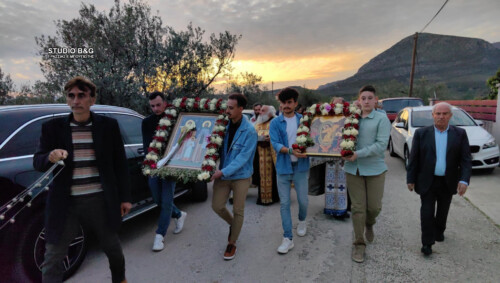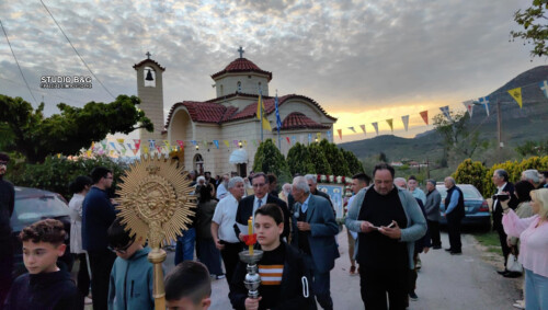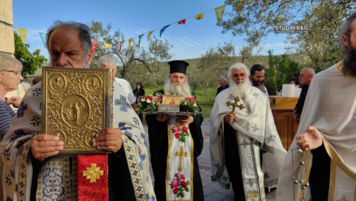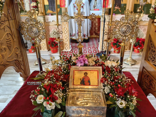 Τα ιερά λείψανα έφερε στο ναό ο πρωτοπρεσβύτερος π. Ανδρέας Βλαχιώτης από τις Μυκήνες και θα παραμείνουν στο ναό έως και την Τετάρτη 23 Απριλίου 2025. Ο εφημέριος του ναού π. Αριστείδης Αποστόλοπουλος ευχαρίστησε τους ιερείς, ψάλτες τις αρχές του τόπου και όλους τους πιστούς για την παρουσία τους.