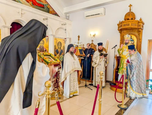Την κυριώνυμο ημέρα, Τετάρτη 26 Νοεμβρίου, της Πανηγυρικής Θείας Λειτουργίας προεξήρχε ο Θεοφιλέστατος Επίσκοπος Κερασούντος κ. Χριστοφόρος, Πρωτοσύγκελλος της Ιεράς Αρχιεπισκοπής Αυστραλίας.