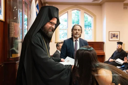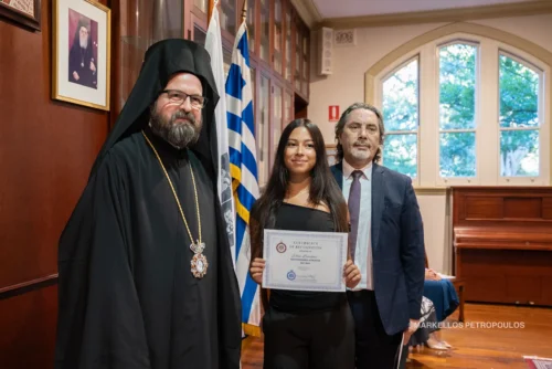 Εκπροσωπώντας τον Σεβασμιώτατο Αρχιεπίσκοπο Αυστραλίας κ.κ. Μακάριο, ο Επίσκοπος Κερασούντος υποδέχθηκε με εγκαρδιότητα την αριστεύσασα νεολαία εκ των τριών ελληνορθόδοξων Κολλεγίων του Σύδνεϋ (Αγίας Ευφημίας, Αγίων Πάντων και Αγίου Σπυρίδωνος) στη μεγάλη Αίθουσα της Θεολογικής Σχολής του Αποστόλου Ανδρέου.