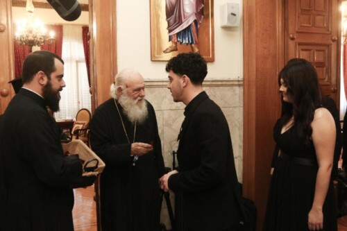 Συνάντηση με νέες και νέους από το καινοτόμο μουσικό–εκπαιδευτικό πρόγραμμα «Επίλεκτο Ηπειρωτικό Ensemble» της Ιεράς Μητροπόλεως Ιωαννίνων είχε σήμερα το πρωί ο Αρχιεπίσκοπος Αθηνών και πάσης Ελλάδος κ. Ιερώνυμος. Τα παιδιά συνόδευε ο Μητροπολίτης Ιωαννίνων κ. Μάξιμος, ο οποίος παρουσίασε στον Αρχιεπίσκοπο τη δράση και την πορεία του προγράμματος, ενώ οι συμμετέχοντες παρουσίασαν στον Μακαριώτατο μια σύντομη μουσική παράσταση, μελωδικά δείγματα της δουλειάς και της εκπαίδευσής τους.
