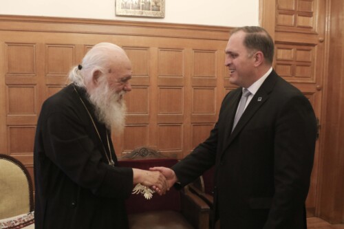 Συνάντηση με την Υφυπουργό Εργασίας και Κοινωνικής Ασφάλισης κυρία Άννα Ευθυμίου, είχε χτες το πρωί ο Αρχιεπίσκοπος Αθηνών και πάσης Ελλάδος κ. Ιερώνυμος, στην Ιερά Αρχιεπισκοπή Αθηνών. Στο επίκεντρο της συζήτησης βρέθηκαν ζητήματα κοινωνικής προστασίας, η στήριξη των ευάλωτων κοινωνικών ομάδων, καθώς και οι δυνατότητες συνεργασίας Εκκλησίας και Πολιτείας προς ενίσχυση της κοινωνικής συνοχής και πρόνοιας.
