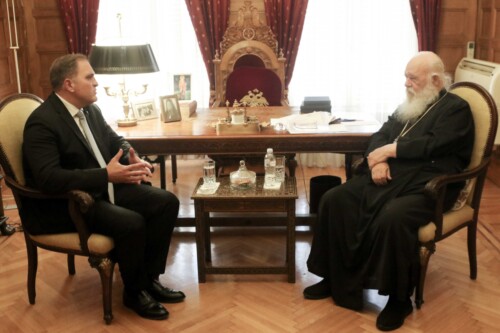 Το μεσημέρι ο Αρχιεπίσκοπος είχε συνάντηση με τον Διοικητή της Ανεξάρτητης Αρχής Δημοσίων Εσόδων κ. Γεώργιο Πιτσιλή, με τον οποίο αντάλλαξαν απόψεις επί ζητημάτων κοινού ενδιαφέροντος.