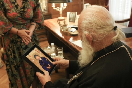 Κατόπιν, ο Μακαριώτατος δέχθηκε σε επίσκεψη την Ομότιμη Καθηγήτρια του Εθνικού Μετσόβιου Πολυτεχνείου κυρία Αντωνία Μοροπούλου. Κατά τη διάρκεια της συνάντησης, αναφέρθηκαν σε θέματα διατήρησης και αποκατάστασης της εκκλησιαστικής πολιτιστικής κληρονομιάς, με έμφαση στη διεπιστημονική συνεργασία για την προστασία ιστορικών ναών και κειμηλίων.