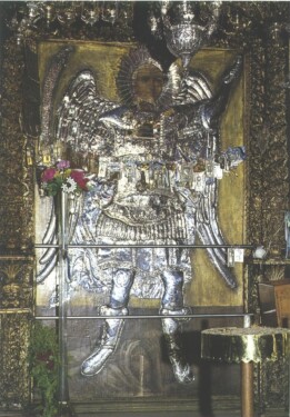 Από επιγραφή που υπάρχει στη θαυματουργή ολόσωμη εικόνα του Πανορμίτη μαρτυρείται ότι ασημώθηκε το 1724 μ.Χ. από τον Ιωάννη Πελοποννήσιο με έξοδα των καπεταναίων, του κλήρου και της κοινότητας Σύμης. Μπροστά στο θαυματουργό εικόνισμα που συγκεντρώνει το σεβασμό, τις προσδοκίες και τις ελπίδες του πιστού λαού είναι κρεμασμένα πλήθος αφιερώματα αργυρά τάματα, ομοιώματα, τιμαλφή.