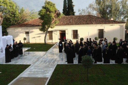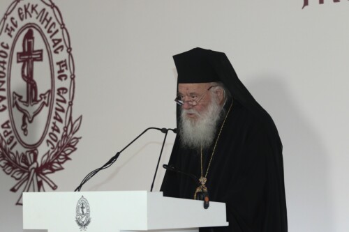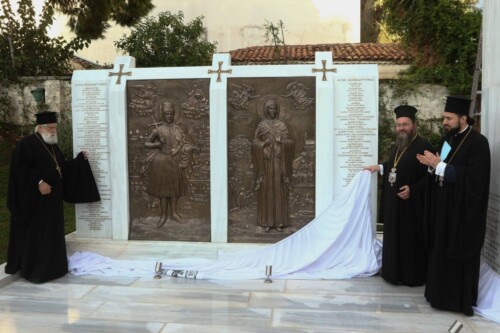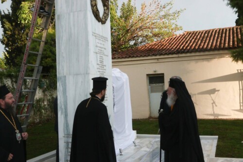 Ο Μακαριώτατος Αρχιεπίσκοπος Αθηνών και πάσης Ελλάδος κ. Ιερώνυμος χαιρέτισε την εκδήλωση, αναφέροντας μεταξύ άλλων ότι «εγκαινιάζουμε απόψε το Μνημείο Νεομαρτύρων του Έθνους σε αυτόν τον πρόσφατα ανακαινισμένο ιστορικό εκκλησιαστικό χώρο. Με τη σεμνή αυτή τελετή και το λαμπρό αυτό Μνημείο θέλουμε να τιμήσουμε και να προβάλουμε ως πρότυπα ζωής τις μορφές των Νεομαρτύρων της Εκκλησίας και του Έθνους. Μορφές ηρωικές, που ακτινοβολώντας το φως του Χριστού, τη δύναμη και την τόλμη της θυσιαζομένης αγάπης, τη φιλοπατρία και τα ιδανικά που εξανθρωπίζουν τον άνθρωπο, συνέβαλαν τα μέγιστα στη διάσωση του Γένους μας, παρά την υποδούλωσή του επί αιώνες στους εξ ανατολών κατακτητές.