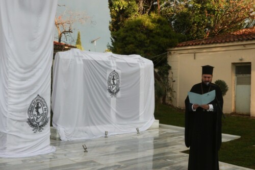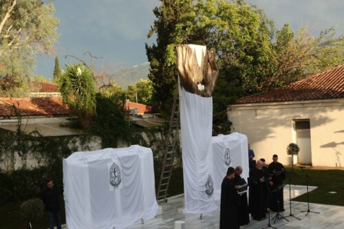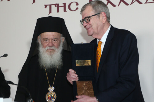Αμέσως μετά, ο Μακαριώτατος απένειμε τιμητικώς στον Εκπρόσωπο του Ιδρύματος «Σταύρος Νιάρχος» (ΙΣΝ) κ. Γεώργιο Αγουρίδη πιστό αντίγραφο της ανάγλυφης απεικόνισης της Οσιομάρτυρος Αγίας Φιλοθέης της Αθηναίας, όπως αυτή φιλοτεχνήθηκε στο Μνημείο, εις ανάμνησιν των εν λόγω λαμπρών Εγκαινίων.