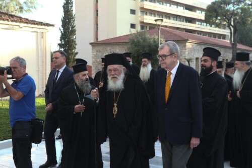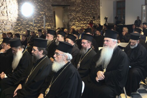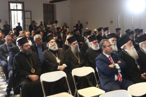Στην Τελετή Εγκαινίων παρευρέθησαν: ο Μακαριώτατος Αρχιεπίσκοπος Αθηνών και πάσης Ελλάδος κ. Ιερώνυμος, οι Σεβασμιώτατοι Μητροπολίτες Μονεμβασίας και Σπάρτης κ. Ευστάθιος, Μυτιλήνης, Ερεσσού και Πλωμαρίου κ. Ιάκωβος, Βεροίας και Ναούσης κ. Παντελεήμων, Ξάνθης και Περιθεωρίου κ. Παντελεήμων, Δημητριάδος και Αλμυρού κ. Ιγνάτιος, Βρεσθένης κ. Θεόκλητος, Χαλκίδος κ. Χρυσόστομος, Νέας Σμύρνης κ. Συμεών, Νεαπόλεως και Σταυρουπόλεως κ. Βαρνάβας, Πατρών κ. Χρυσόστομος, Μεσσηνίας κ. Χρυσόστομος, Θηβών, Λεβαδείας και Αυλίδος κ. Γεώργιος, Άρτης κ. Καλλίνικος, Νέας Ιωνίας, Φιλαδελφείας, Ηρακλείου και Χαλκηδόνος κ. Γαβριήλ, Νικοπόλεως και Πρεβέζης κ. Χρυσόστομος, Ιερισσού, Αγίου Όρους και Αρδαμερίου κ. Θεόκλητος, Μαρωνείας και Κομοτηνής κ. Παντελεήμων, Ιωαννίνων κ. Μάξιμος, Νέας Κρήνης και Καλαμαριάς κ. Ιουστίνος, Μάνης κ. Χρυσόστομος, Φθιώτιδος κ. Συμεών, Θεσσαλονίκης κ. Φιλόθεος, Καστορίας κ. Καλλίνικος, Πολυανής και Κιλκισίου κ. Βαρθολομαίος και Αιτωλίας και Ακαρνανίας κ. Δαμασκηνός, οι Θεοφιλέστατοι Επίσκοποι Τανάγρας κ. Απόστολος και Θεσπιών κ. Παύλος, ο Αρχιγραμματεύς της Ιεράς Συνόδου της Εκκλησίας της Ελλάδος Πανοσιολογιώτατος Αρχιμανδρίτης κ. Ιωάννης Καραμούζης, ο Πρωτοσύγκελλος της Ιεράς Αρχιεπισκοπής Αθηνών Πανοσιολογιώτατος Αρχιμανδρίτης κ. Βαρνάβας Θεοχάρης και ο Πρόεδρος της Ειδικής Συνοδικής Επιτροπής επί της Ακαδημίας Εκκλησιαστικών Τεχνών, Αιδεσιμολ. Πρωτοπρεσβύτερος κ. Θωμάς Συνοδινός.