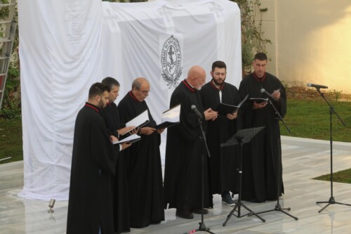 Προ των Εγκαινίων έψαλε ύμνους των Αγίων Νεομαρτύρων βυζαντινή χορωδία υπό τον Πρωτοψάλτη και Μουσικοδιδάσκαλο κ. Νικόλαο Δημητρακόπουλο.