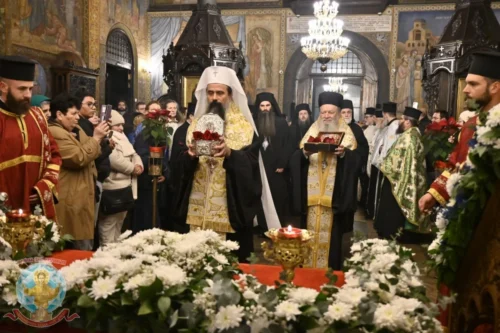 Την Κυριακή, 25 Ιανουαρίου, στον ίδιο Ι. Ναό, τελέστηκε Αρχιερατικό Συλλείτουργο, προεξάρχοντος του Μακαριωτάτου Πατριάρχου κ.κ. Δανιήλ, με συλλειτουργούς τον Σεβασμιώτατο Μητροπολίτη Χαλκίδος κ. Χρυσόστομο, τον συνοδεύσαντα αυτόν Θεοφιλέστατο Επίσκοπο Σκοπέλου κ. Νικόδημο και Αρχιερείς την Εκκλησίας της Βουλγαρίας.