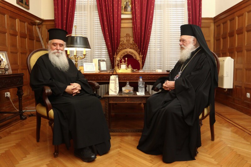 O Αρχιεπίσκοπος Σινά κ. Συμεών στον Αρχιεπίσκοπο Αθηνών και πάσης Ελλάδος κ. Ιερώνυμο