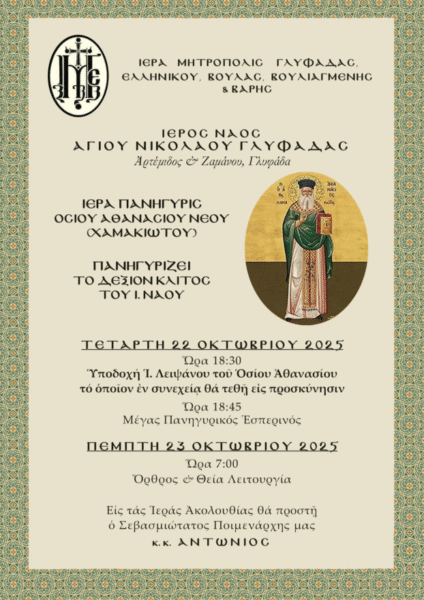 Όπως έχει καθιερωθεί, το πρωί της Κυριακής 13 Οκτωβρίου 2025, τελέστηκε στον Ιερό Ναό της Αγίας Μαρίνης Άνω Τούμπας Θεσσαλονίκης, Ιερόν Μνημόσυνον υπέρ αναπαύσεως των ψυχών όλων των ηρώων και μαρτύρων Ιεραρχών και ιερέων του Οικουμενικού Πατριαρχείου αλλά και όλων των αγωνιστών κατά τον θυσιαστικό Μακεδονικό Αγώνα, υπό την ευλογία του Σεβασμιωτάτου Μητροπολίτου Θεσσαλονίκης κ. Φιλοθέου. […]