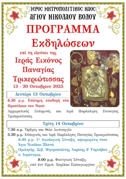 Την Τρίτη 14 Οκτωβρίου 2025, και ώρα 8:30 το απόγευμα, στο Επισκοπείο της Ιεράς Μητροπόλεως Λαρίσης και Τυρνάβου (Ιωαννίνων 3, έναντι πυροσβεστικής), ξεκινούν οι συνάξεις νέων. Οι συνάξεις νέων, τόπος διαλόγου, παρέας και ουσιαστικών αναζητήσεων, απευθύνονται σε νέους είτε είναι φοιτητές, είτε είναι εργαζόμενοι, ηλικίας από 18 έως 30 ετών και πραγματοποιούνται με την ευθύνη […]