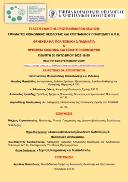 ΤΜΗΜΑΤΟΣ ΚΟΙΝΩΝΙΚΗΣ ΘΕΟΛΟΓΙΑΣ ΚΑΙ ΧΡΙΣΤΙΑΝΙΚΟΥ ΠΟΛΙΤΙΣΜΟΥ Α.Π.Θ.