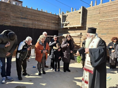 Στην συνέχεια ο Σεβασμιώτατος κ. Γεώργιος αναφέρθηκε στην σημασία της θεμελιώσεως και ανεργέσεως του ιερού ναού ο οποίος αποτελεί τόπος προσευχής και κοινής λατρείας των πιστών όπου διοχετεύεται η χάρις του θεού.