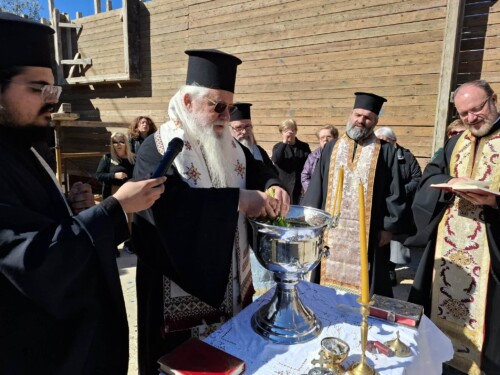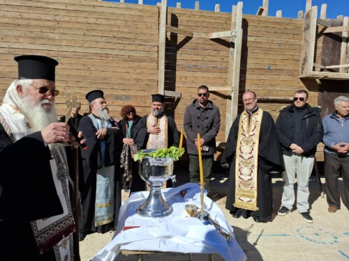 Στην συνέχεια ο Σεβασμιώτατος κ. Γεώργιος αναφέρθηκε στην σημασία της θεμελιώσεως και ανεργέσεως του ιερού ναού ο οποίος αποτελεί τόπος προσευχής και κοινής λατρείας των πιστών όπου διοχετεύεται η χάρις του θεού.