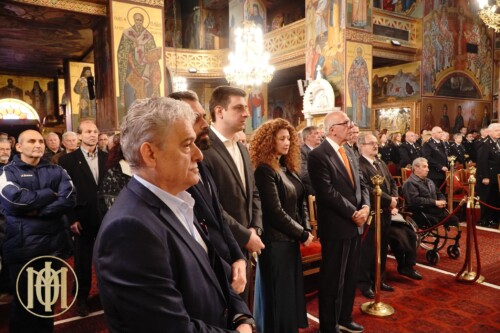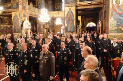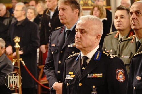Στη δοξολογία παρόντες ήταν ο Γενικός Επιθεωρητής Πυροσβεστικής Βορείου Ελλάδος, Αντιστράτηγος κ. Θεόδωρος Κοσμίδης, ο Γενικός Επιθεωρητής Αστυνομίας Βορείου Ελλάδος, Αντιστράτηγος κ. Γεώργιος Παπαδόπουλος, ο Διοικητής της Α.ΔΙ.Σ.ΠΟ., Υποστράτηγος κ. Μιχαήλ Πλουμής, αξιωματικοί, υπαξιωματικοί και πολιτικό προσωπικό του Πυροσβεστικού Σώματος, των τριών κλάδων των Ενόπλων Δυνάμεων και της Ελληνικής Αστυνομίας, καθώς επίσης και εκπρόσωποι της τοπικής αυτοδιοίκησης.