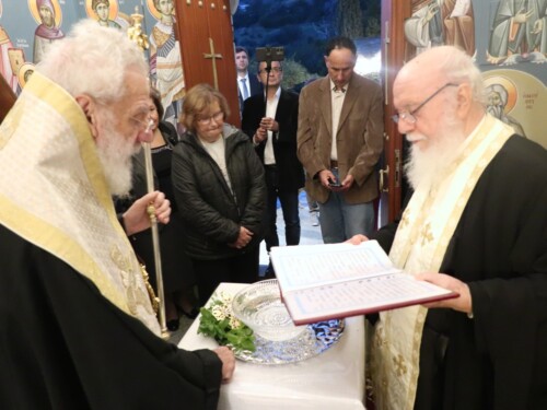 Ο Σεβασμιώτατος κ. Δωρόθεος Β’ ευχαρίστησε και συνεχάρη την ευγενεστάτη κτήτορα του Παρεκκλησίου για την ευρεία κοινωνική και φιλανθρωπική δράση της και ευχήθηκε στην ίδια και τους παρισταμένους υγεία και μακροημέρευση.