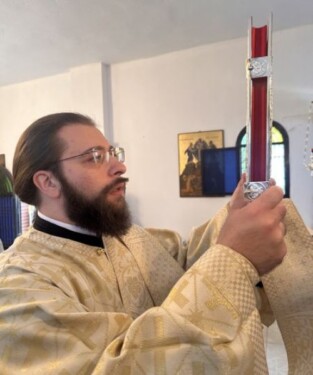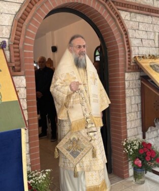 Στο τέλος της Θείας Λειτουργίας, ο Σεβασμιώτατος απηύθυνε πατρικό λόγο προς τους πιστούς, καλώντας όλους να αποφεύγουμε την πνευματική τύφλωση και να ζητούμε τη φώτιση του Θεού. Ευχήθηκε η Παναγία η Πορταΐτισσα να στέκεται φρουρός στην καρδιά και στη ζωή μας, και ο Άγιος Φιλόθεος, ο δικός μας Άγιος, να ευλογεί την πόλη μας, τη Μητρόπολή μας, το χωριό του Ριζώματος, καθώς και τον πατέρα Ευάγγελο, Αρχιερατικό Επίτροπο, ο οποίος με φιλόστοργη διάθεση και αυταπάρνηση αγωνίζεται για όλους.