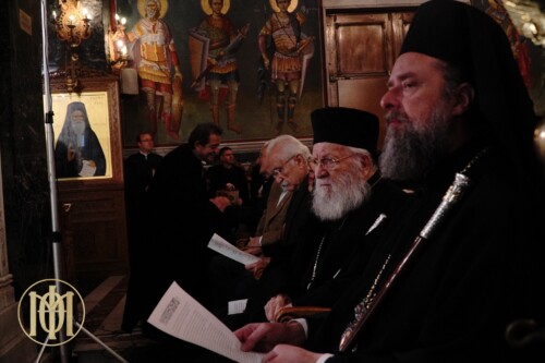 Την Α.Θ.Π., τον Οικουμενικό Πατριάρχη κ.κ. Βαρθολομαίο, εκπροσώπησε ο Παναγιώτατος Μητροπολίτης Θεσσαλονίκης κ. Φιλόθεος, ο οποίος και ανέγνωσε το σχετικό Πατριαρχικό Γράμμα. Χαιρετισμό απηύθυναν ο Διευθυντής της Σχολής Βυζαντινής Μουσικής της Ι.Μ.Θ., κ. Χαράλαμπος Τζινευράκης, ο Πρόεδρος του Σωματείου Ιεροψαλτών «Άγιος Ιωάννης ο Δαμασκηνός», κ. Χρήστος Τασσιός, και η θυγατέρα του αειμνήστου Άρχοντος, κα. Βαρβάρα Ευθυμιάδου – Τσιλιγκερίδου.