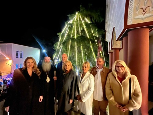 Το βράδυ της Δευτέρας 24 Νοεμβρίου, μετά τον πανηγυρικό Αρχιερατικό Εσπερινό της Πολιούχου Αγίας Αικατερίνης, μπροστά στο Μητροπολιτικό Μέγαρο Κατερίνης, πραγματοποιήθηκε εορταστική Χριστουγεννιάτικη εκδήλωση και φωταγώγηση του φυσικού κέδρου και της φάτνης που βρίσκεται στην αυλή του Επισκοπείου.