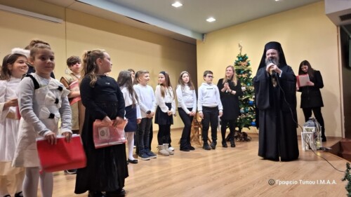 Κατά το κλείσιμο ο Σεβασμιώτατος Ποιμενάρχης μας κ. Δαμασκηνός ευχαρίστησε θερμά όλους όσοι συνέβαλλαν στην διοργάνωση και στην πραγματοποίηση της όμορφης και συγκινητικής αυτής εορταστικής εκδήλωσης των Κατηχητικών Σχολείων των δύο Ενοριών, τις Κατηχήτριες, τους Ιερείς, τους γονείς και όλα τα παιδιά, μικρά και μεγάλα και ευχήθηκε σε όλους καλά και ευλογημένα Χριστούγεννα.