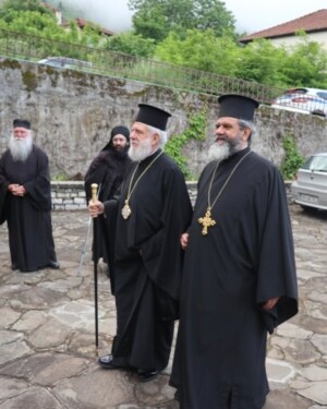 Τέλος, ευχαρίστησε τους προσελθόντες Αρχιερείς, οι οποίοι στη συνέχεια μετέβησαν στην Ιερά Μονή Ταξιαρχών Γκούρας και τέλεσαν τρισάγιο επί του τάφου του μακαριστού Μητροπολίτου Πωγωνιανής και Κονίτσης Ανδρέου.