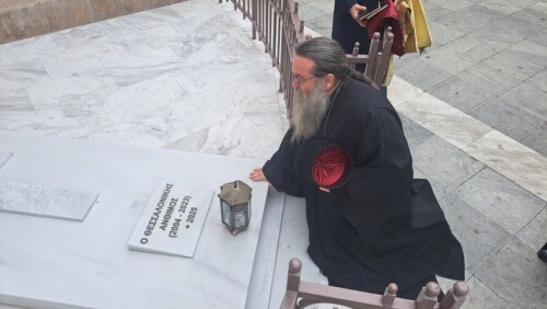 Διερχόμενος από την Θεσσαλονίκη, μετά την ΛΕ’ Πανορθόδοξη Διάσκεψη Αιρέσεων, ο Σεβασμιώτατος Μητροπολίτης Χίου κ. Μάρκος, με την κανονική άδεια και παρουσία του Παναγιωτάτου Μητροπολίτου Θεσσαλονίκης κ. Φιλοθέου, επισκέφθηκε τον Ιερό Μητροπολιτικό Ναό Αγ. Γρηγορίου Παλαμά και τέλεσε Τρισάγιο στον τάφο του μεγάλου Ιεράρχου της Θράκης(1974-2004) και της Μακεδονίας (2004-2023) Μητροπολίτου Θεσσαλονίκης ΑΝΘΙΜΟΥ του από Αλεξανδρουπόλεως.