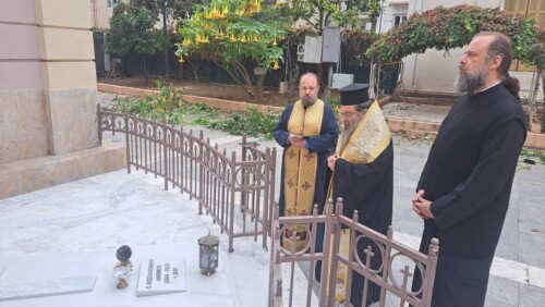 Διερχόμενος από την Θεσσαλονίκη, μετά την ΛΕ’ Πανορθόδοξη Διάσκεψη Αιρέσεων, ο Σεβασμιώτατος Μητροπολίτης Χίου κ. Μάρκος, με την κανονική άδεια και παρουσία του Παναγιωτάτου Μητροπολίτου Θεσσαλονίκης κ. Φιλοθέου, επισκέφθηκε τον Ιερό Μητροπολιτικό Ναό Αγ. Γρηγορίου Παλαμά και τέλεσε Τρισάγιο στον τάφο του μεγάλου Ιεράρχου της Θράκης(1974-2004) και της Μακεδονίας (2004-2023) Μητροπολίτου Θεσσαλονίκης ΑΝΘΙΜΟΥ του από Αλεξανδρουπόλεως.