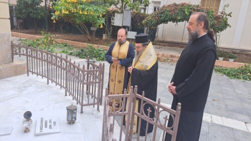 Ο Χίος Ιεράρχης βαθύτατα συγκινημένος και γονυκλινής προσευχήθηκε για τον εκκλησιαστικό άνδρα, που ενέπνευσε την ζωή και την πορεία του από τα φοιτητικά χρόνια του. Επίσης ο Σεβ. Χίου ευχαρίστησε και συνεχάρη τον Παναγιώτατο κ. Φιλόθεο για τον μοναδικό και αξιέπαινο τρόπο, που φρόντισε, τίμησε και εξακολουθεί να τιμά τον μεγάλο Προκάτοχό του.