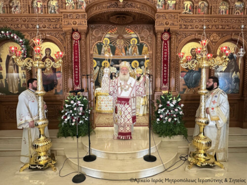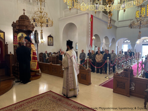 Στην Θεία Λειτουργία έλαβαν μέρος ο Πανοσιολ. Αρχιμ. Αμβρόσιος Σκαρβέλης, Πρωτοσύγκελλος της Ι. Μητροπόλεως, ο Πανοσιολ. Αρχιμ. Πορφύριος Αγγελάκης, Εφημέριος και προϊστάμενος του πανηγυρίζοντος ναού, ο εξ Ιεραπέτρας καταγόμενος Αιδεσιμολ. πρωτ. Ιωάννης Δελημπαλτάς, Εφημέριος της Ι. Μητροπόλεως Κορίνθου, ο συνταξ. Αιδεσιμ. πρωτ. Μιχαήλ Ξυδιανός, ο Αιδεσιμ. Ιερεύς Γεώργιος Λογκάκης και οι Διάκονοι Κωνσταντίνος Ζουμπεράκης, της Ιεράς Μητροπόλεως Ρεθύμνης και Αυλοποτάμου, Γεώργιος Αλέξης, της Ιεράς Μητροπόλεως Πέτρας και Χερρονήσου, και Θεμιστοκλής Μπεϊνας, της Ιεράς Μητροπόλεως Ιεραπύτνης και Σητείας.