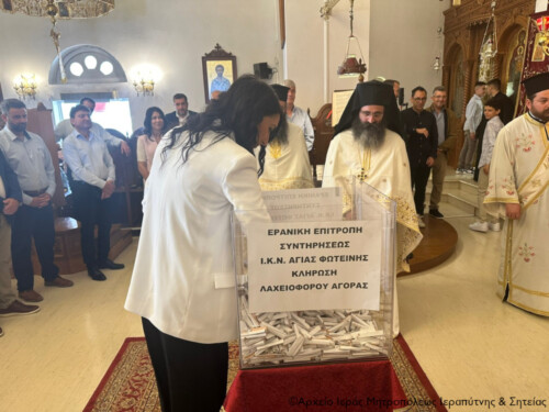 Τέλος, ακολούθησε η κλήρωση για τη διενεργηθείσα λαχειοφόρο αγορά και ο Σεβ. Μητροπολίτης κ. Κύριλλος ανακοίνωσε ότι μετά τις εργασίες αποκατάστασης των κωδωνοστασίων ξεκινούν άμεσα οι εργασίες συντήρησης και ανακαίνισης των εξωτερικών όψεων του ναού.