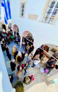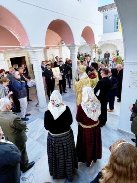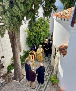 Μετά την λιτανευτική πομπή πέριξ του Ι Ναού ,τελέσθηκε προεξάρχοντος του Σεβασμιωτάτου και με την παρουσία των Αρχών της Νήσου, η Δοξολογία επι τη επετείω της κήρυξης της Επανάστασης του 1821 στις Σπέτσες και της ανάρτησης της σημαίας στο ιστορικό Κωδωνοστάσιο της πάλαι ποτέ Ιεράς Μονής του Αγίου Νικολάου .