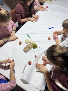 Στη συνέχεια, τα παιδιά περιηγήθηκαν στην έκθεση φωτογραφίας «Μάνες» που επιμελήθηκε ο κ. Νίκος Γραίκος και φιλοξενείται στο Πνευματικό Κέντρο «Άγιος Φώτιος», η οποία αποτέλεσε αφορμή για να εξερευνήσουν το «κουβάρι της μητρότητας». Ειδικότερα, με αφετηρία την εικονογράφηση του παραμυθιού «Εγώ είμαι το κουβάρι κι εσύ η κλωστή» του Alberto Pellai, κάθε παιδί ξετύλιξε το δικό του κουβάρι και σιγά σιγά πλέχτηκε ένας μοναδικός ιστός αγάπης ανάμεσα στη μητέρα και το παιδί. Σε κάθε πλέξη, τα παιδιά μοιράστηκαν προσωπικές ιστορίες και στιγμές με τη μοναδική τους μαμά.