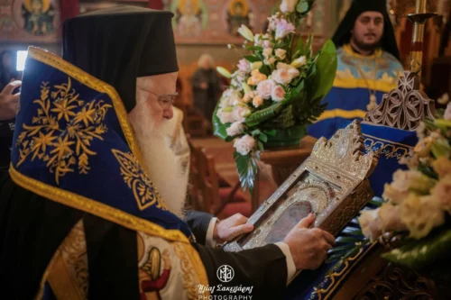 Με συγκίνηση και ευγνωμοσύνη η τοπική Εκκλησία της Δημητριάδος υποδέχθηκε την Τρίτη, 2 Δεκεμβρίου, την Ιερά και Θαυματουργή εικόνα της Παναγίας Εικονιστρίας από τη Σκιάθο. Την Ιερά Εικόνα υποδέχθηκε επισήμως στα πρόπυλα του Μητροπολιτικού Ιερού Ναού Αγίου Νικολάου Βόλου ο Σεβασμιώτατος Μητροπολίτης Δημητριάδος κ. Ιγνάτιος, επικεφαλής του ιερού Κλήρου και του ευσεβούς λαού, που κατέκλυσε τον Ναό του Πολιούχου του Βόλου.